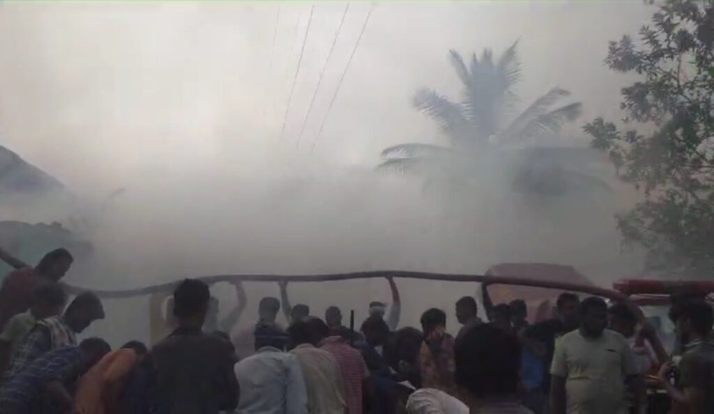 ಕಲ್ಲಯ್ಯನಪಾಳ್ಯದ ಗಂಗಾಧರ್ ರವರ ಮನೆಯಲ್ಲಿ ಪ್ರತಿವರ್ಷದಂತೆ ಈ ವರ್ಷವೂ ಸಹ ಇಡೀ ಕುಟುಂಬ ಒಬಟ್ಟು ಸೇರಿದಂತೆ ಸಿಹಿ ಖ್ಯಾದ್ಯಗಳನ್ನ ಮಾಡಿ ಊಟದ ಸಂಭ್ರಮದಲ್ಲಿ ಇದ್ದರೂ ಅಷ್ಟರಲ್ಲಿ ಅಡುಗೆ ಮನೆಯಲ್ಲಿ ಗ್ಯಾಸ್ ಸೋರಿಕೆಯಾಗಿ ವಾಸನ ಬರಲು ಆರಂಬಿಸಿದೆ ,ಬೆಂಕಿ ಕಾಣಿಸಿಕೊಂಡ ಹಿನ್ನೆಲೆ ಮನೆಯಲ್ಲಿಇದ್ದವರೆಲ್ಲ,ಮನೆ ಬಿಟ್ಟು ಹೊರಗೆ ಓಡಿಬಂದಿದ್ದಾರೆ,ಹೊರಗೆ ಬಿಸಿಲಿನ ಧಗೆ ಒಳಗೆ ಗ್ಯಾಸ್ ಆವರಿಸಿ ಬೆಂಕಿ ಕೆನ್ನಾಲಿಗೆ ಕ್ಷಣಾರ್ಧದಲ್ಲಿ ಮನೆಯನ್ನೆಲ್ಲ ಆವರಿಸಿದ ,ಗ್ರಾಮಸ್ಥರ ನೆರವಿನಿಂದ ಬೆಂಕಿ ನಂದಿಸಲು ಪ್ರಯತ್ನಸಿಸಿದರು ಸಾಧ್ಯವಾಗಿಲ್ಲ ,ಬೆಂಕಿ ಕೆನ್ನಾಲಿಗೆ ಗಂಗಾಧರ್ ಸೋದರಿ ಹಾಗೂ ರೂಪ, ಹಾಗೂ ಪಕ್ಕದ ಮನೆ ಗೌರಮ್ಮನ ಮನೆಗೂ ವ್ಯಾಪಿಸಿದೆ ನೋಡ ನೋಡುವಷ್ಟರಲ್ಲಿ ನಾಲ್ಕು ಮನೆಗಳು ಬೆಂಕಿಗಾಹುತಿಗಾತಿದ್ದು ಇಡೀ ಕುಟುಂಬಗಳು ಬೀದಿಗೆ ಬಿದ್ದಿವೆ ಸ್ಥಳಕ್ಕೆ ನೊಣವಿನಕೆರೆ ಪೊಲೀಸರು ಭೇಟಿ ನೀಡಿದ್ದು,ತಿಪಟೂರು ಅಗ್ನಿಶಾಮಕ ಠಾಣೆ ಸಿಬ್ಬಂದಿ, ಹಾಗೂ ತುರುವೇಕೆರೆ ಅಗ್ನಿಶಾಮಕ ವಾಹನ ಭೇಟಿ ನೀಡಿದ್ದಾರೆ.