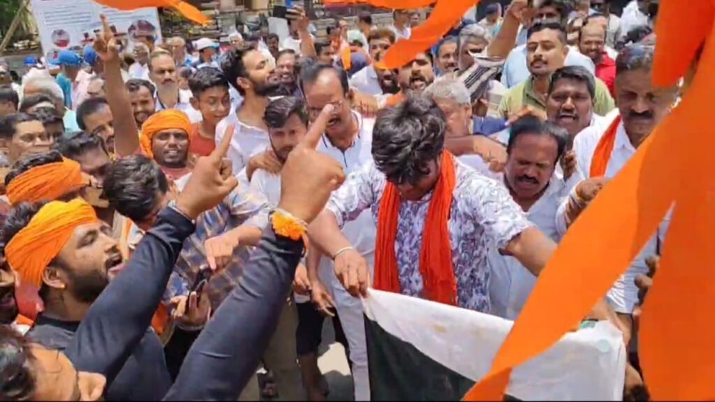 ತಿಪಟೂರು :ಕಾಶ್ಮೀರದ ಪಹಲ್ಗಾಮ್ ನಲ್ಲಿ ಅಮಾಯಕ ಹಿಂದೂಗಳ ಹತ್ಯೆ ಖಂಡಿಸಿ.ತಿಪಟೂರಿನಲ್ಲಿ ಪಾಕಿಸ್ಥಾನದ ಬಾವುಟಕ್ಕೆ ಬೆಂಕಿಹಚ್ಚಿ ಆಕ್ರೋಶ ವ್ಯಕ್ತಪಡಿಸಲಾಯಿತು.