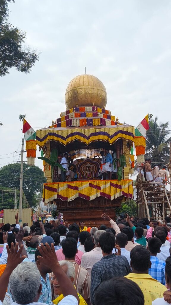 ಮಣಿಕೆರೆ ಗ್ರಾಮದಲ್ಲಿ ನೂತನ ರಥದಲ್ಲಿ ವಿರಾಜಮಾನರಾದ ಶ್ರೀಕರಿಯಮ್ಮದೇವಿ ಹಾಗೂ ಶ್ರೀ ಆಂಜನೇಯ ಸ್ವಾಮಿ