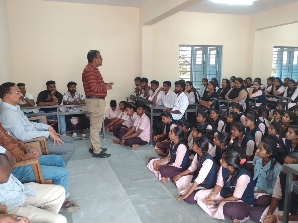 ತಿಪಟೂರು: ಇತ್ತೀಚಿನ ದಿನಗಳಲ್ಲಿ ಅಪರಾಧಗಳ ಸಂಖ್ಯೆ ಹೆಚ್ಚುತ್ತಿದೆ ಈ ನಿಟ್ಟಿನಲ್ಲಿ ಕಾನೂನಿನ ಅರಿವಿನ ಕಾರ್ಯಕ್ರಮ ಅತ್ಯಗತ್ಯ ತುರ್ತು ಎಂದು ಕೆ.ಎಲ್. ಎ ಸ್ಕೂಲ್ ಆಫ್ ಲಾ ಕಾಲೇಜುವತಿಯಿಂದ ತಿಪಟೂರು ಸರ್ಕಾರಿ ಪದವಿ ಪೂರ್ವ ಕಾಲೇಜಿನಲ್ಲಿ ಆಯೋಜಿಸಿದ್ದ ಕಾನೂನಿನ ಅರಿವು ಕಾರ್ಯಕ್ರಮದಲ್ಲಿ ಉಪ ಪ್ರಾಂಶುಪಾಲರಾದ ಪ್ರಸನ್ನ ಕುಮಾರ್ ಮಾತನಾಡಿದರು, ಭವಿಷ್ಯದ ಕಾನೂನಿನ ವಿದ್ಯಾಬ್ಯಾಸ ಕುರಿತು ಸಲಹೆ ಮತ್ತು ಸಮಾಜದಲ್ಲಿ ವಕೀಲ ವೃತ್ತಿಯ ಪ್ರಾಮುಖ್ಯತೆಯ ಬಗ್ಗೆ ವಿವರಿಸಿದರು ಹಾಗೂ ಕಾನೂನನ್ನು ಪಾಲಿಸುವುದರಿಂದ ಆಗುವ ಅನುಕೂಲಗಳು ತಪ್ಪಿದಲ್ಲಿ ಎದುರಿಸಬೇಕಾದ ಅಪಾಯಗಳ ಕುರಿತು ವಿದ್ಯಾರ್ಥಿಗಳಿಗೆ ಎಚ್ಚರಿಕೆ ನೀಡಿ,ಕಾನೂನಿನ ಕುರಿತ ವಿದ್ಯಾರ್ಥಿಗಳ ಪ್ರಶ್ನೆಗಳಿಗೆ ಉತ್ತರಿಸಿದರು.