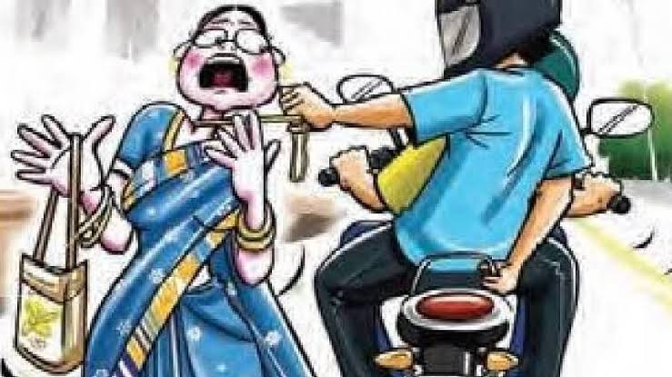 ಎರಡು ಎಳೆ ಚಿನ್ನದ 40 ಗ್ರಾಂ ಮಾಂಗಲ್ಯ ಸರ .ಮತ್ತು 20garm ಚೈನ್ ಕಿತ್ತುಕೊಂಡು ಪರಾರಿಯಾಗಿರುವ ಘಟನೆ ನಡೆದಿದೆ.