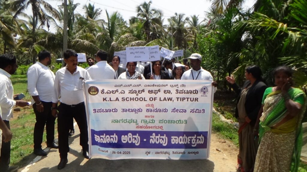 ತಿಪಟೂರು: ಕಾನೂನುಗಳು ನಮ್ಮ ಸುಖ ನೆಮ್ಮದಿ ರಕ್ಷಣೆಗಳಿಗಾಗಿ ಇವೆ ಅದನ್ನ ಸರಿಯಾದ ರೀತಿ ಸದ್ಬಳಕೆ ಮಾಡಿಕೊಳ್ಳಬೇಕೆ ಹೊರತು ದುರುಪಯೋಗ ಪಡಿಸಿಕೊಳ್ಳಬಾರದು ಎಂದು ಕಸಬಾ ಹೋಬಳಿಯ ನಾಗರಘಟ್ಟ ಗ್ರಾಮ ಪಂಚಾಯಿತಿಯಲ್ಲಿ ಕೆ ಎಲ್ ಎ ಸ್ಕೂಲ್ ಆಫ್ ಲಾ ಕಾಲೇಜು ಮತ್ತು ಕಾನೂನು ಸೇವಾ ಸಮಿತಿ ಇವರ ಸಂಯುಕ್ತಾಶ್ರಯದಲ್ಲಿ ಉಚಿತ ಕಾನೂನು ಶಿಬಿರ ಮತ್ತು ಮಹಿಳಾ ವಿಶೇಷ ಗ್ರಾಮ ಸಭೆಯನ್ನು ಆಯೋಜಿಸಲಾಗಿದ್ದ ಕಾರ್ಯಕ್ರಮಕ್ಕೆ ಗೌರವಾನ್ವಿತ 5ನೇ ಅಧಿಕ ಜಿಲ್ಲಾ ಮತ್ತು ಸತ್ರ ನ್ಯಾಯಾಧೀಶರಾದ ಶ್ರೀಮತಿ ಪುಷ್ಪಾವತಿ ಚಾಲನೆ ನೀಡಿ ಮಾತನಾಡಿದರು.ಗ್ರಾಮೀಣ ಭಾಗದಲ್ಲಿ ಗಂಡು ಮಕ್ಕಳು ಬೇಕು ಎಂಬ ಉದ್ದೇಶದಿಂದ ಮಹಿಳೆಯರಿಗೆ ಕಿರುಕುಳವನ್ನು ನೀಡಲಾಗುತ್ತಿದ್ದು ಅದಕ್ಕೆ ಶಿಶು ಭ್ರೂಣ ಹತ್ಯೆ ನಿಷೇಧ ಕಾಯ್ದೆ ಎಂಬ ಕಾನೂನು ತರಲಾಗಿದೆ ಬಾಲ್ಯ ವಿವಾಹ ಪದ್ಧತಿಯು ಇನ್ನೂ ಜೀವಂತವಾಗಿದೆ ಎಂದು ಕಳವಳ ವ್ಯಕ್ತಪಡಿಸಿದರು. ಅಲ್ಲದೆ ಈ ಹಿಂದೆ ಮಹಿಳೆಗೆ ಆಸ್ತಿ ಹಕ್ಕು ಇರಲಿಲ್ಲ ಆದರೆ ಈಗ ಮಹಿಳೆಯು ಪುರುಷರ ಆಸ್ತಿ ಹಕ್ಕುಗಳಿಗೆ ಸರಿಸಮಾನವಾಗಿ ತನ್ನ ಆಸ್ತಿ ಹಕ್ಕುಗಳನ್ನು ಅನುಭವಿಸಲು ಕಾನೂನಿನ ಅಡಿಯಲ್ಲಿ ಅವಕಾಶ ಕಲ್ಪಿಸಲಾಗಿದೆ.ಅಪ್ರಾಪ್ತ ವಯಸ್ಕರ ಹೆಣ್ಣು ಮಕ್ಕಳ ಮೇಲೆ ನಡೆಯುವ ಲೈಂಗಿಕ ಕಿರುಕುಳಕ್ಕೆ ಪೋಕ್ಸೋ ಕಾಯ್ದೆ ಮೂಲಕ ಶಿಕ್ಷೆಗೆ ಗುರಿಪಡಿಸಲಾಗುತ್ತದೆ. ವರದಕ್ಷಿಣೆಯನ್ನು ಪಡೆಯುವುದು ಹಾಗೂ ವರದಕ್ಷಣೆಯನ್ನು ಕೊಡುವುದು ಎರಡೂ ಅಪರಾಧವಾಗಿದೆ.ಪತ್ನಿಯನ್ನು ಏಕವಚನದಲ್ಲಿ ಮಾತನಾಡಿಸುವುದು ಮತ್ತು ಉದ್ಯೋಗಕ್ಕೆ ತೆರಳುವುದನ್ನು ತಡೆಯುವುದು ಕೂಡ ಅಪರಾಧವಾಗುತ್ತದೆ ಆದರೆ ಇಂತಹ ಹಕ್ಕುಗಳಿಗೆ ನೋವಾಗಿರಬೇಕು ಅಂತಹ ಸಂದರ್ಭದಲ್ಲಿ ನ್ಯಾಯಾಲಯದಲ್ಲಿ ಮೊಕದ್ದಮೆ ಹೂಡಬಹುದಾಗಿದೆ ಎಂದು ಶಿಬಿರಾರ್ಥಿಗಳಿಗೆ ಕಾನೂನು ಅರಿವು ಮೂಡಿಸಿದರು.