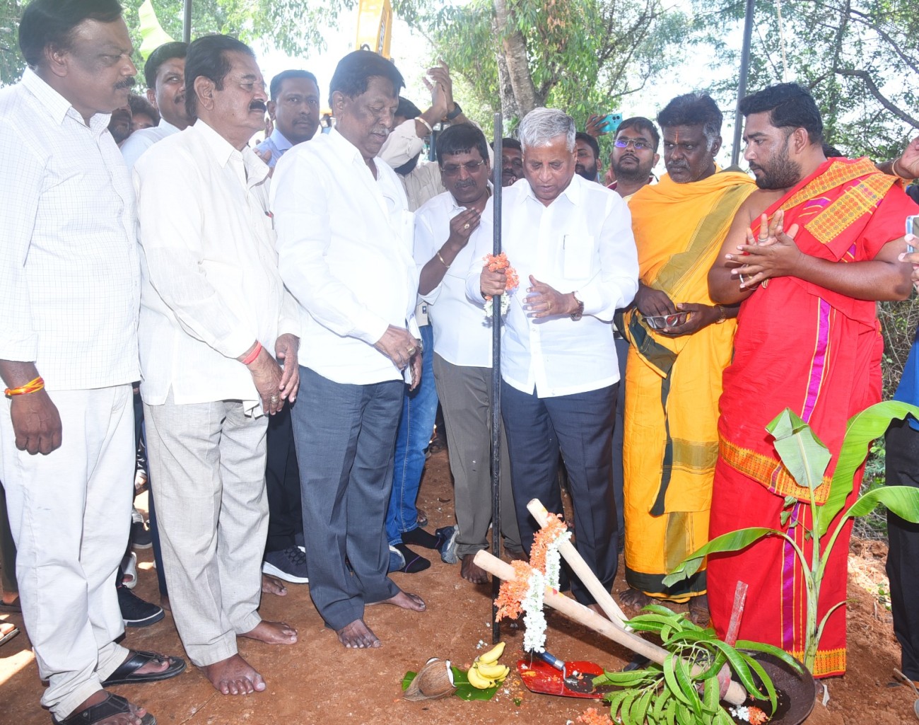 ತಿಪಟೂರು : ತುರುವೇಕೆರೆ-ತಿಪಟೂರು ತಾಲ್ಲೂಕಿನ ಗಡಿಭಾಗ ಕುಂದೂರು ಬಳಿ ರಾಷ್ಟ್ರೀಯ ಹೆದ್ದಾರಿ 150ಎ ನ 42.236 ಕಿ.ಮೀ. ಉದ್ದದ ಕಿಬ್ಬನಹಳ್ಳಿ ಕ್ರಾಸ್, ಬಾಣಸಂದ್ರ, ತುರುವೇಕೆರೆ, ಮಾಯಸಂದ್ರ, ಚುಂಚನಹಳ್ಳಿ ಹಾಗೂ ನೆಲ್ಲಿಗೆರೆ ಭಾಗದ ಸುಮಾರು 617.28 ಕೋಟಿ ರೂ. ವೆಚ್ಚದ ರಸ್ತೆ ಅಭಿವೃದ್ಧಿ ಕಾಮಗಾರಿಗೆ ಕೇಂದ್ರ ಜಲಶಕ್ತಿ ಹಾಗೂ ರೈಲ್ವೆ ಖಾತೆ ರಾಜ್ಯ ಸಚಿವ ವಿ.ಸೋಮಣ್ಣ ಭೂಮಿ ಪೂಜೆ ನೆರವೇರಿಸಿದರು.