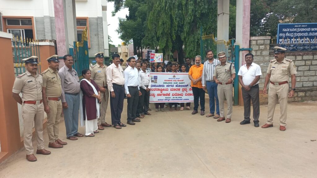 ತಿಪಟೂರು ಉಪವಿಭಾಗ ಪೊಲೀಸ್ ಇಲಾಖೆ. ನಗರಪೊಲೀಸ್ ಠಾಣೆ ತಿಪಟೂರು ಸೇರಿದಂತೆ ವಿವಿಧ ಇಲಾಖೆಗಳು ಹಾಗೂ ಸಂಘ ಸಂಸ್ಥೆಗಳಿಂದ ವಿಶ್ವಮಾದಕ ವಸ್ತು ಸೇವನೆ ಹಾಗೂ ಸಾಗಾಣಿಕೆ ವಿರೋಧಿ ದಿನಾಚರಣೆ ಅಂಗವಾಗಿ ಜಾಗೃತಿ ಜಾಥ ನಡೆಸಲಾಯಿತು.