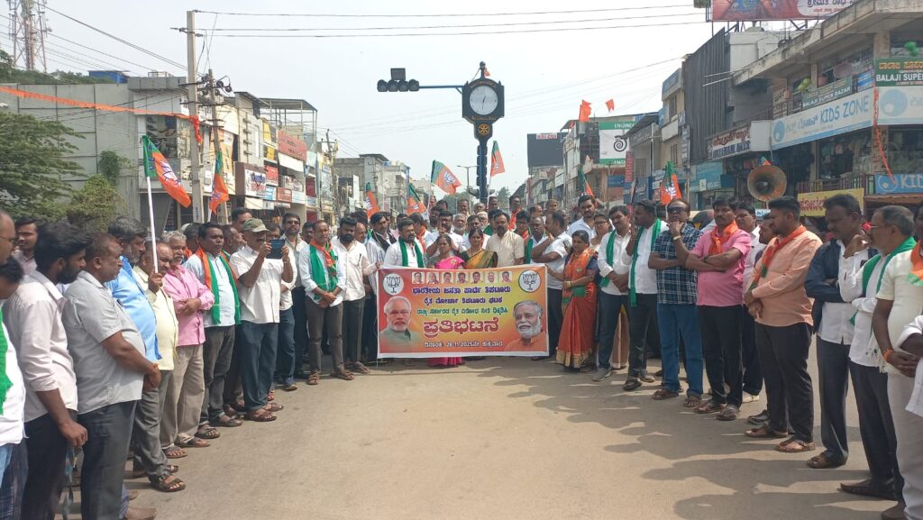 ನಗರದ ನಗರಸಭಾ ವೃತ್ತದಲ್ಲಿ ಪ್ರತಿಭಟನೆ ನಡೆಸಿದ ಬಿಜೆಪಿ ಮುಖಂಡರು ಸರ್ಕಾರದ ವಿರುದ್ದ ಘೋಷಣೆ ಕೂಗಿ ಆಕ್ರೋಶ ವ್ಯಕ್ತಪಡಿಸಿದರು.