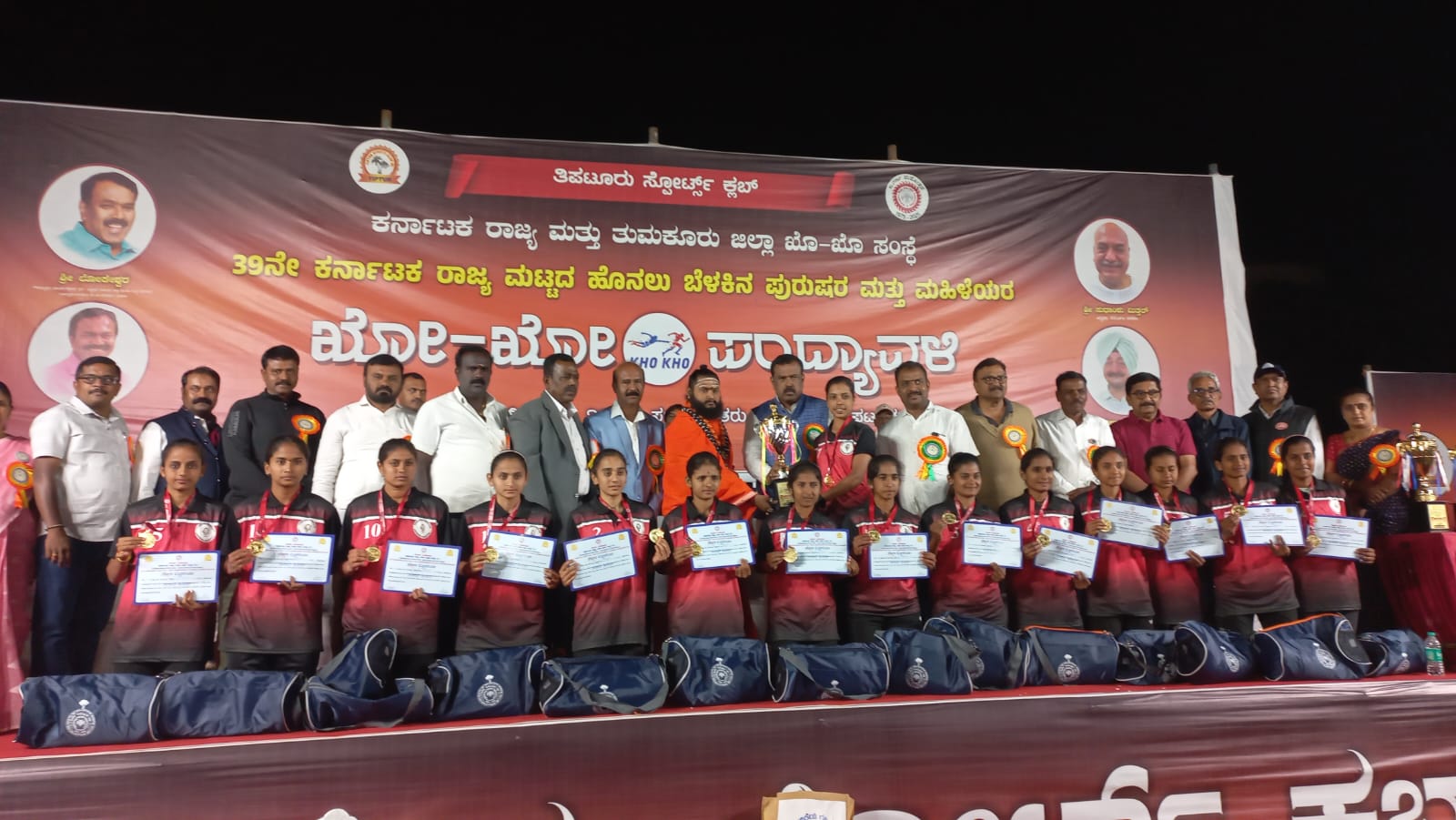 ಮಹಿಳೆಯರ ವಿಭಾಗದಲ್ಲಿ ಕುರುಬೂರು ಕಪಿಲಾ ಸ್ಪೋರ್ಡ್ಸ್ ಕ್ಲಬ್ ಪಡೆದುಕೊಂಡರೆ ದ್ವಿತೀಯ ಸ್ಥಾನವನ್ನ ಬಿಇವೈಎ ಕ್ಲಬ್ ಪಡೆದುಕೊಂಡಿತು.ವಿಜೇತ ತಂಡಗಳಿಗೆ ನೊಣವಿನಕೆರೆ ಶ್ರೀಕಾಡಸಿದ್ದೇಶ್ವರ ಮಠದ ಅಭಿನವ ಶ್ರೀಕಾಡಸಿದ್ದೇಶ್ವರಸ್ವಾಮೀಜಿ .ಕರ್ನಾಟಕ ಖೋಖೋ ಸಂಸ್ಥೆ ಅಧ್ಯಕ್ಷ ಲೋಕೇಶ್ವರ್,ಕೆಪಿಸಿಸಿ ಸದಸ್ಯ ವಿ.ಯೋಗೇಶ್ .ಕಲ್ಪತರು ವಿದ್ಯಾಸಂಸ್ಥೆ ಖಜಾಂಚಿ ಶಿವಪ್ರಸಾದ್ ವಿತರಣೆ ಮಾಡಿದರು