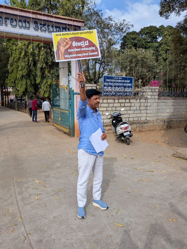 ರಾಜ್ಯಪಾಲರ ಹುದ್ದೆಗೆ ಅವಮಾನ ಮಾಡುವ ಉದ್ದೇಶ ನನಗಿಲ್ಲ. ಆದರೆ ಸಂವಿಧಾನ ಮೀರಿದ ನಡೆ. ಯಾರಿಂದ ಬಂದರೂ ಅದು ತಪ್ಪೇ. ಇದು ಪಕ್ಷ ರಾಜಕಾರಣದ ಪ್ರಶ್ನೆಯಲ್ಲ, ಅಧಿಕಾರದ ಪ್ರಶ್ನೆಯಲ್ಲ. ಇದು ನಮ್ಮ ಹಕ್ಕಿನ ಪ್ರಶ್ನೆ, ನಮ್ಮ ಪ್ರಜಾಪ್ರಭುತ್ವದ ಪ್ರಶ್ನೆ ಎಂದು ಸಿಬಿ ಶಶಿಧರ್ ಸ್ಪಷ್ಟಪಡಿಸಿದರು.ಪ್ರತಿಭಟನೆಯ ಅಂತ್ಯದಲ್ಲಿ ಅವರು,ಪ್ರಜಾಪ್ರಭುತ್ವ ಭಿಕ್ಷೆಯಲ್ಲ. ಅದು ಜನರ ಹಕ್ಕು. ಆ ಹಕ್ಕಿನ ಮೇಲೆ ಯಾರೇ ಕೈ ಹಾಕಿದರು ನಾವು ಮೌನವಾಗಿರುವುದಿಲ್ಲ.ಜೈಸಂವಿಧಾನ.ಜೈ ಪ್ರಜಾಪ್ರಭುತ್ವ.