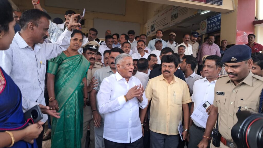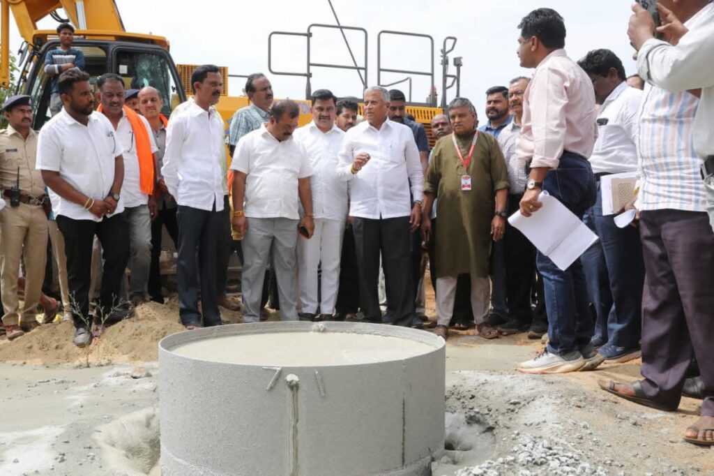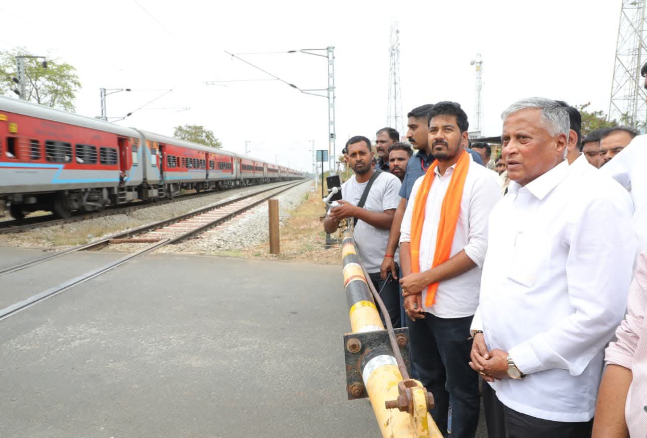 : ಕೇಂದ್ರ ರೈಲ್ವೆ ಹಾಗೂ ಜಲಶಕ್ತಿ ಸಹಾಯಕ ಸಚಿವ ವಿ.ಸೋಮಣ್ಣ ತಿಪಟೂರಿಗೆ ಭೇಟಿ ಹಾಸನ ಸರ್ಕಲ್ ಶಾರದ ನಗರ ರೈಲ್ವೆ ಮೇಲ್ಸೇತುವೆ ಕಾಮಗಾರಿ ಪರಿಶೀಲನೆ ನಡೆಸಿದರು.
