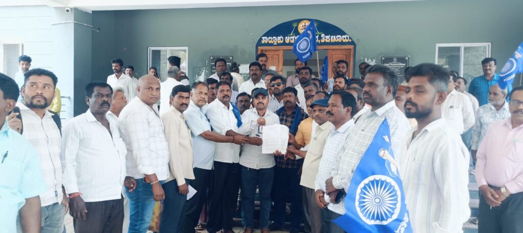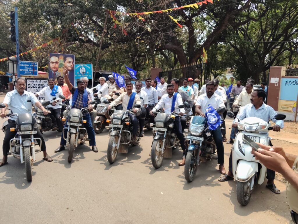 ನಗರದ ಡಾ. ಬಿ.ಆರ್. ಅಂಬೇಡ್ಕರ್ ವೃತ್ತದಿಂದ ಬೈಕ್ ರ್ಯಾಲಿ ಮೂಲಕ ತಾಲ್ಲೂಕು ಆಡಳಿತ ಸೌಧಕ್ಕೆ ತೆರಳಿದ ಪ್ರತಿಭಟನಾಕಾರರು ಪ್ರತಿಭಟನೆ ನಡೆಸಿ ತಹಸೀಲ್ದಾರ್ ಮೂಲಕ ಸರ್ಕಾರಕ್ಕೆ ಮನವಿ ಪತ್ರ ಸಲ್ಲಿಸಿದರು.