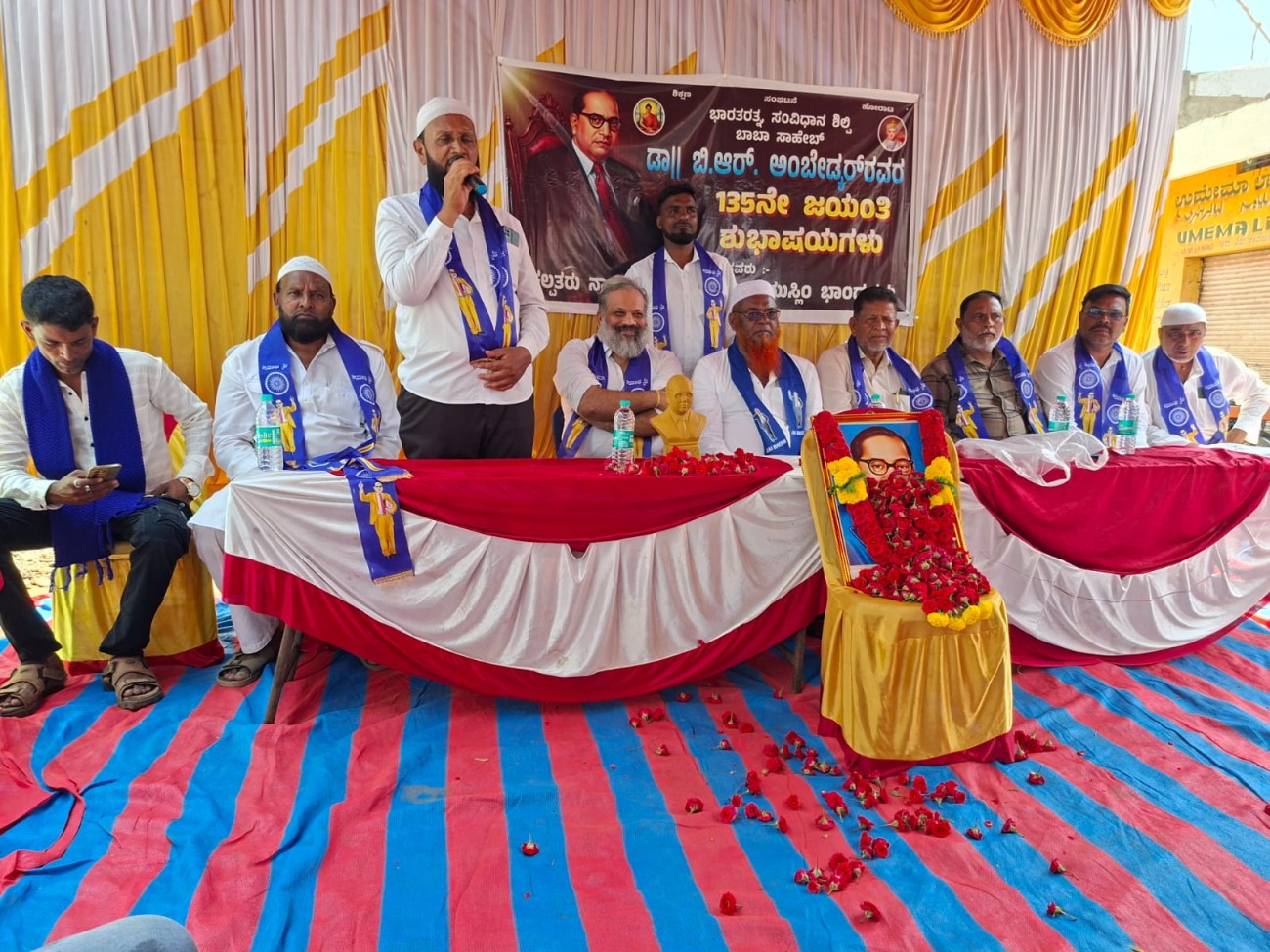 ನಗರದ ಗಾಂಧೀನಗರ ಪೊಲೀಸ್ ಚೌಕಿ ವೃತ್ತದಲ್ಲಿ ಮುಸ್ಲಿಂ ಸಮಾಜದ ವತಿಯಿಂದ ಆಯೋಜಿಸಲಾದ ಸಂವಿಧಾನ ಶಿಲ್ಪಿ ಡಾ. ಬಿ.ಆರ್. ಅಂಬೇಡ್ಕರ್ ಅವರ ಜಯಂತಿ ಕಾರ್ಯಕ್ರಮದಲ್ಲಿ ಮುಖ್ಯ ಅತಿಥಿಗಳಾಗಿ ಭಾಗವಹಿಸಿ, ಅಂಬೇಡ್ಕರ್ ಅವರ ಭಾವಚಿತ್ರಕ್ಕೆ ಪುಷ್ಪಾರ್ಚನೆ ಸಲ್ಲಿಸಿದಅವರು ಮಾತನಾಡಿ ಭಾರತವು ಬಹುಸಂಸ್ಕೃತಿಯ ದೇಶವಾಗಿದ್ದು, ಇಲ್ಲಿ ನೂರಾರು ಜಾತಿ, ಧರ್ಮ ಹಾಗೂ ಮತಪಂಥಗಳಿವೆ. ವ್ಯಕ್ತಿಗತ ಆಚರಣೆಗಳಿಗೆ ಅವಕಾಶ ನೀಡಿದರೂ, ದೇಶದ ಸಂವಿಧಾನ ಎಲ್ಲರಿಗೂ ಸಮಾನವಾಗಿ ಬದುಕುವ ಹಕ್ಕನ್ನು ನೀಡಿದೆ. ಆದ್ದರಿಂದ ಪ್ರತಿಯೊಬ್ಬರೂ ಸಂವಿಧಾನವನ್ನು ಗೌರವಿಸಿ, ಅದರ ಮೌಲ್ಯಗಳನ್ನು ಜೀವನದಲ್ಲಿ ಅಳವಡಿಸಿಕೊಳ್ಳಬೇಕು,